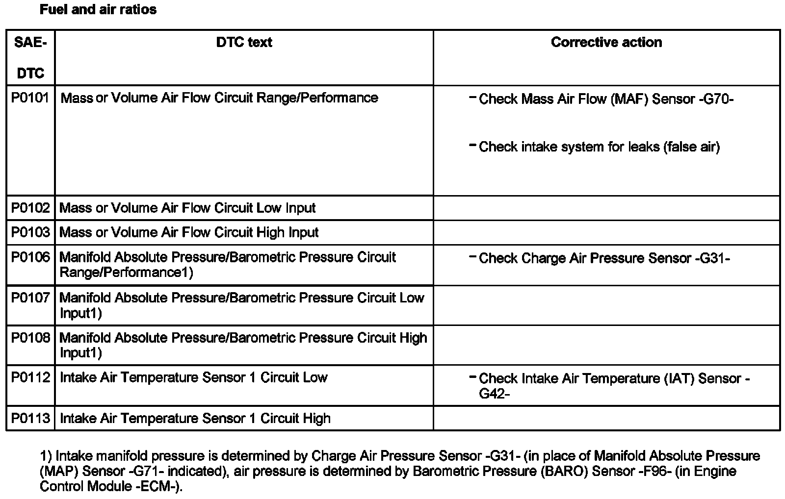 DTC P0101 - P0113: