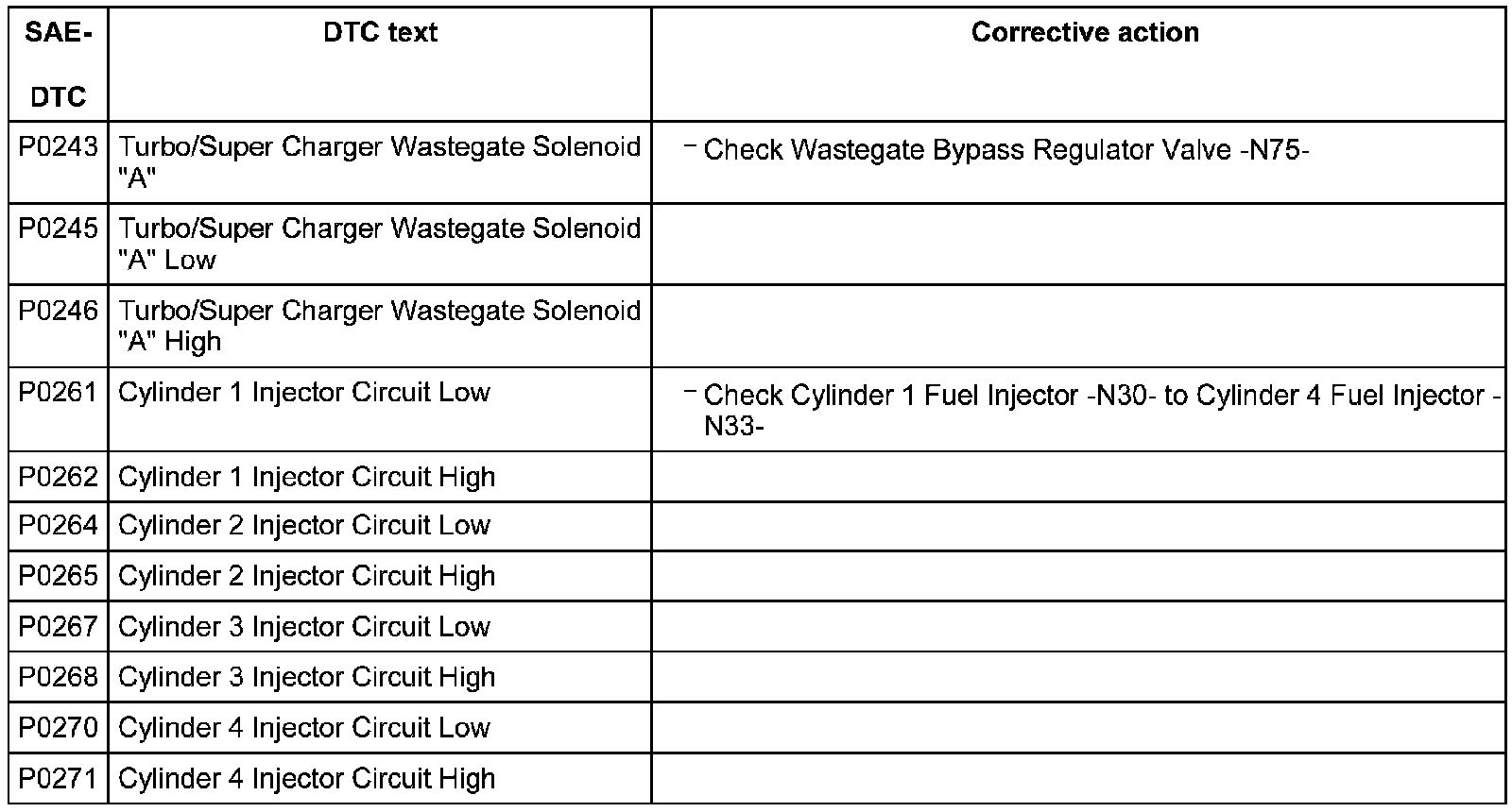 DTC P0243 - P0271: