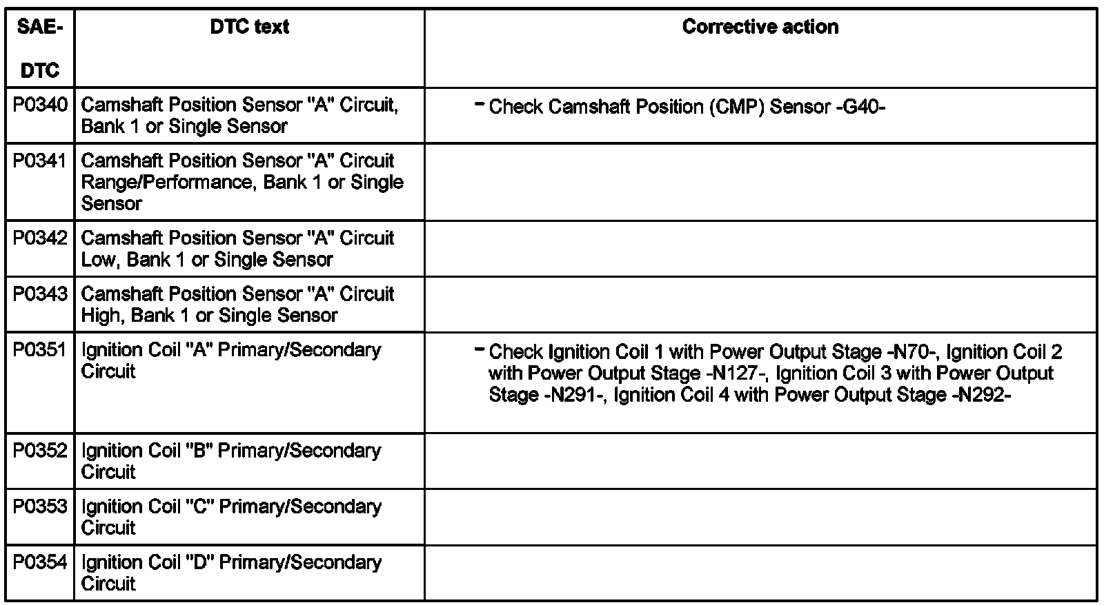 DTC P0340 - P0354: