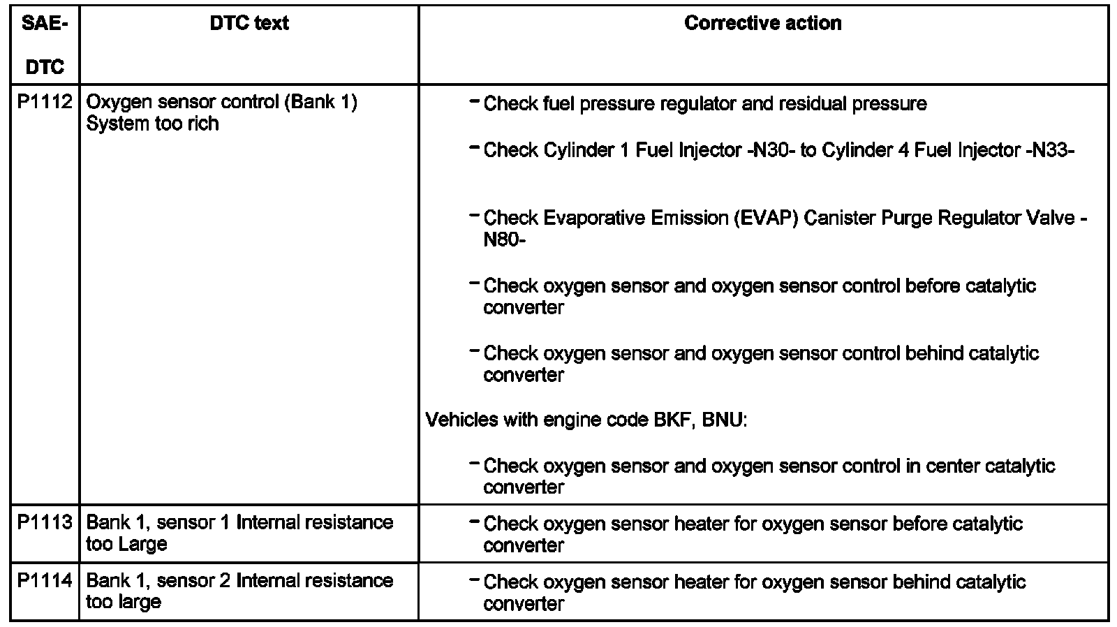 DTC P1112 - P1114: