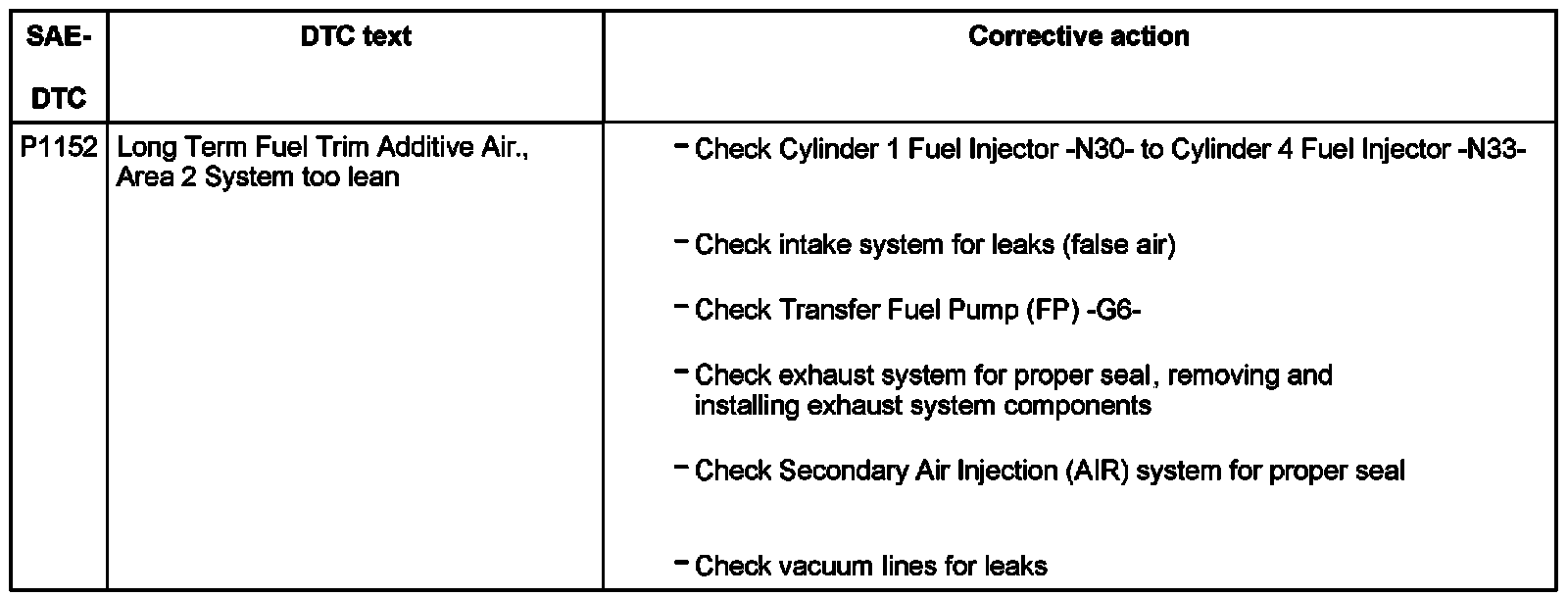 DTC P01152: