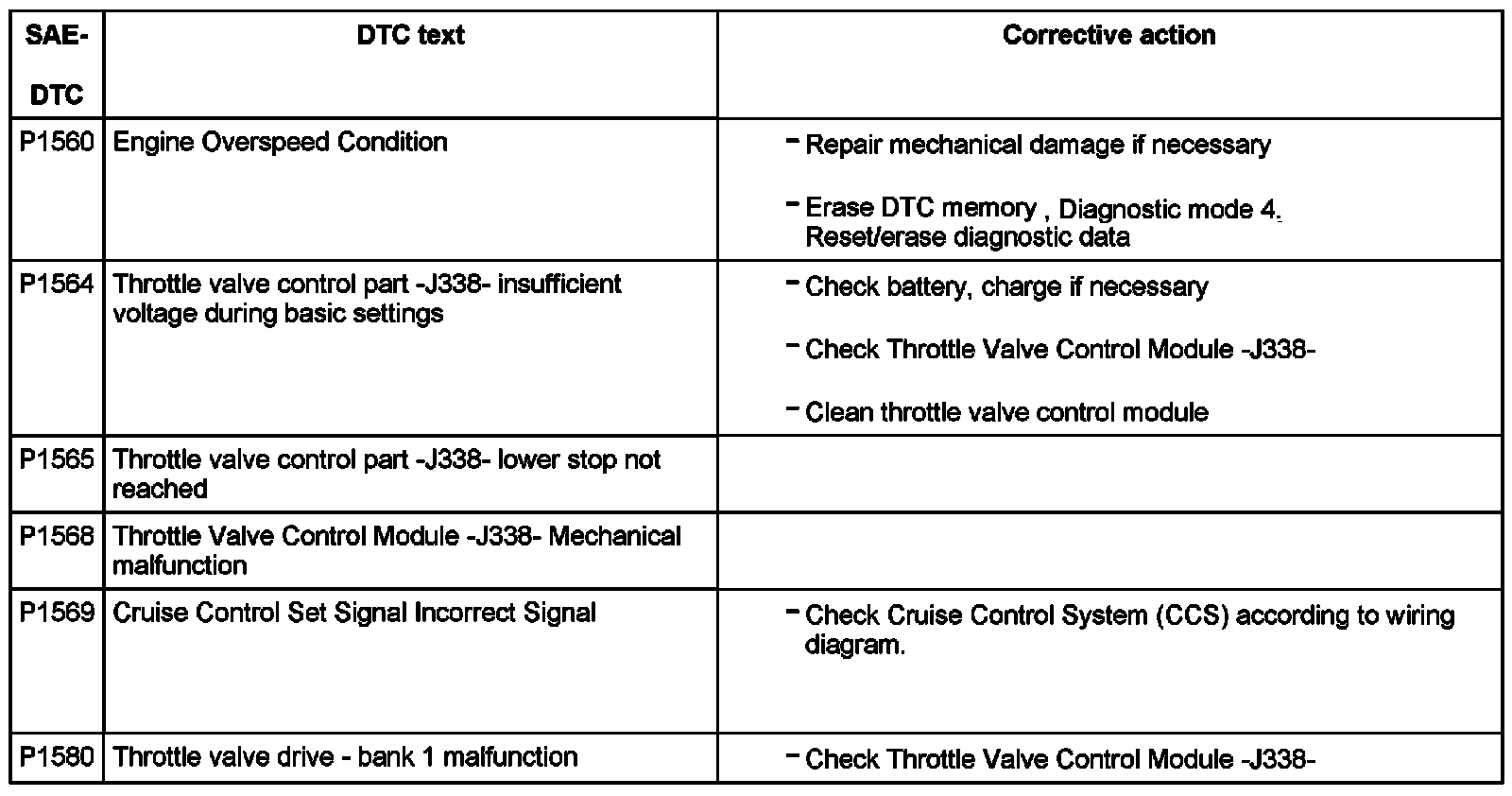 DTC P1560 - P1580: