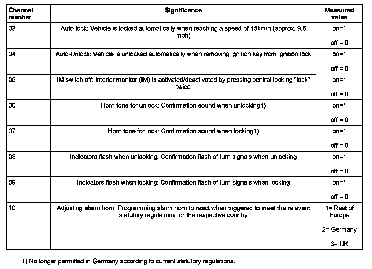 - Press buttons -0- and -8- (channel number 08 switches the turn signals on or off when unlocking).