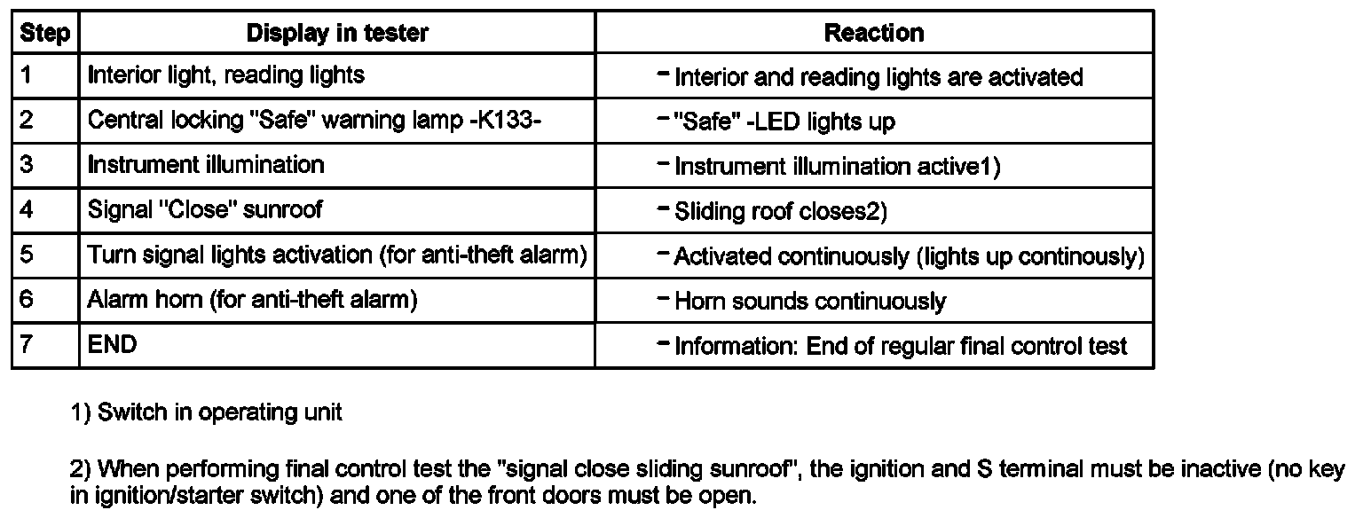 The components displayed in the Output Diagnostic Test Mode (DTM) can differ depending upon the equipment installed on the vehicle. For example on vehicles without ATA there will be no step "1" as listed in the table.