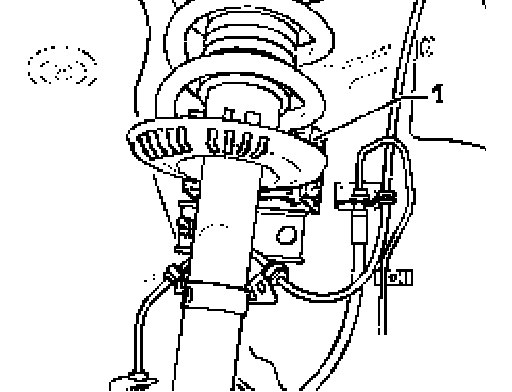 - Swivel suspension strut outward and support e.g. using block of wood - 1 -.