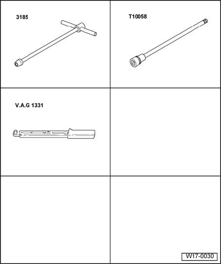 ^ Loosen oil pan bolts with jointed wrench 3185 and remove with socket T10058.