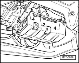 - Remove bolts - 2 - and take sleeves - 3 - off front and rear parts of oil pan protection.