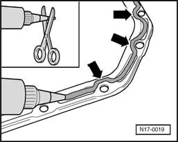 ^ Let sealing compound dry for approx. 30 minutes after installing the oil pan. Only then fill the engine with oil.