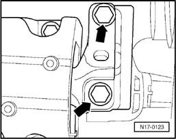 - Lift engine and transmission slightly using engine/transmission jack V.A.G 1383 A.