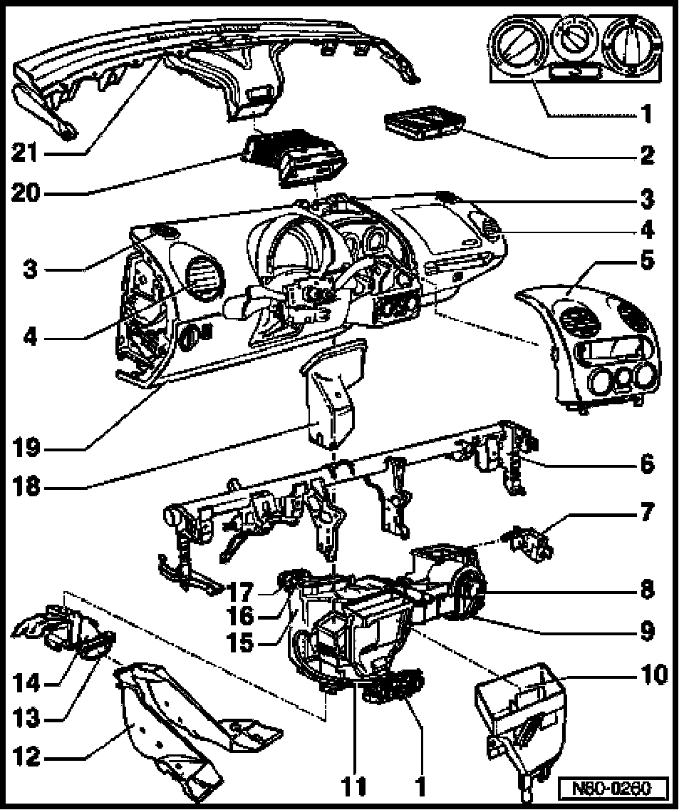 Fig. 5 Instrument panel cross member, loosening and tightening
