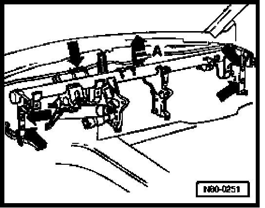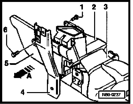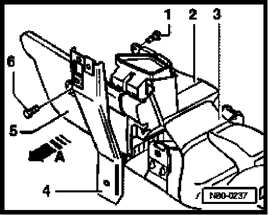 - Pull connecting piece out towards the driver's side footwell -arrow A-.