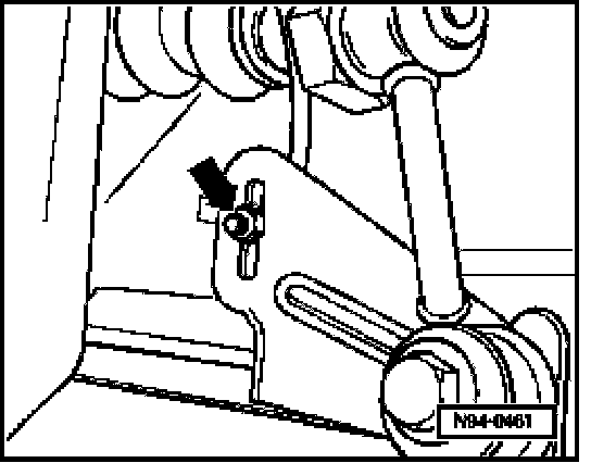 - Loosen lower securing bolt -arrow- on coupling rod of front axle.