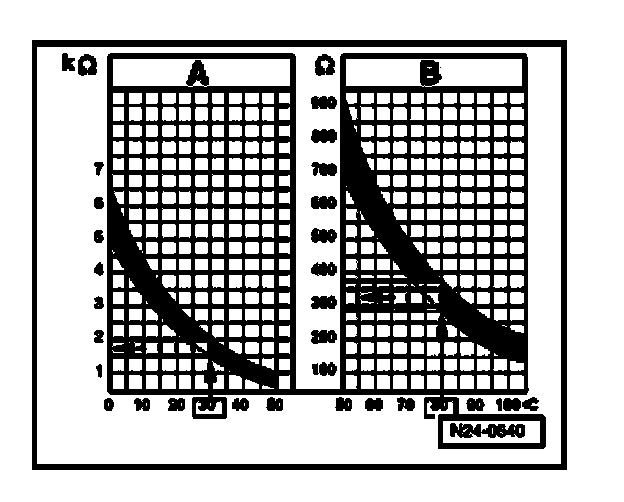 - 30 degrees C is in range A and corresponds to a resistance of 1.5 to 2.0 kohms