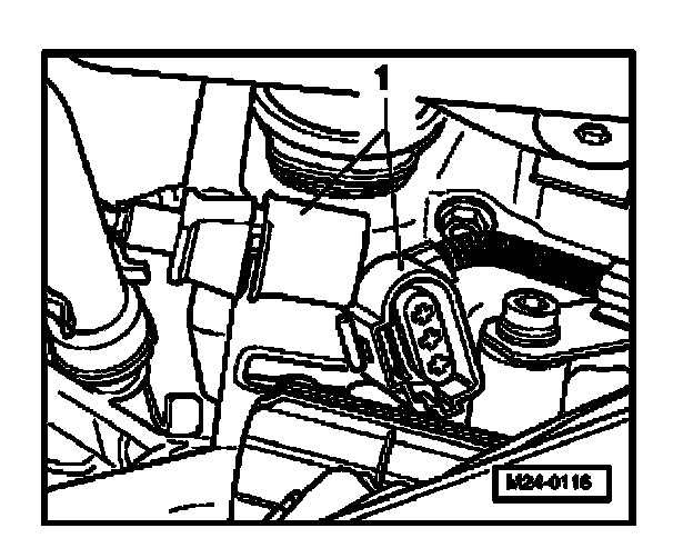- Disconnect gray 3-pin harness connector -1- leading to Engine Speed (RPM) Sensor -G28-.