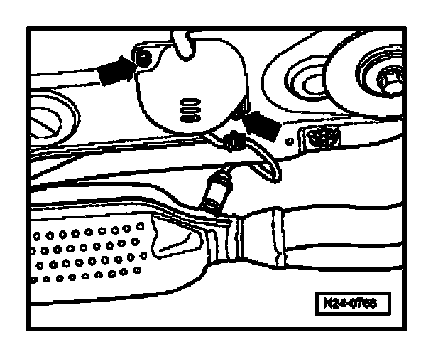 - Remove protective cover (arrows) and disconnect 4-pin harness connector to Oxygen Sensor (O2S) in Center Three Way Catalytic Converter (TWC), Bank 1 -G465-