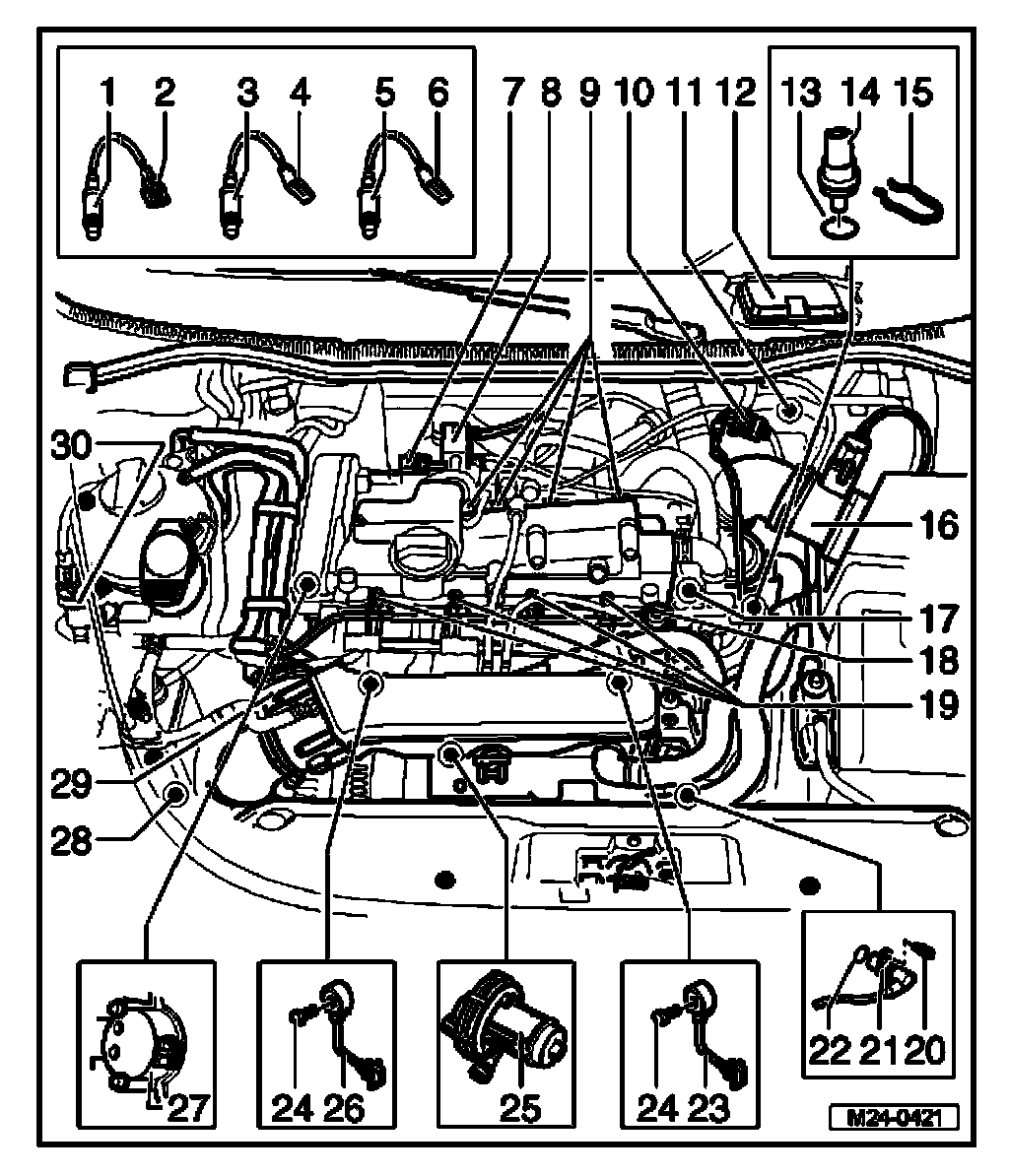 8. Ignition coil with output stage (-N70-, -N127-, -N291-, -N292-)