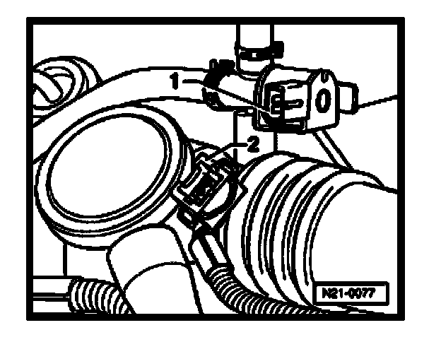 - Disconnect connector -2- at Wastegate Bypass Regulator Valve -N75- (-1-).