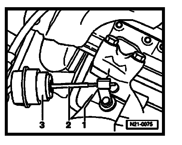 - Bring engine to maximum RPM by depressing accelerator pedal suddenly. Operating rod -2- for wastegate bypass regulator valve must move.