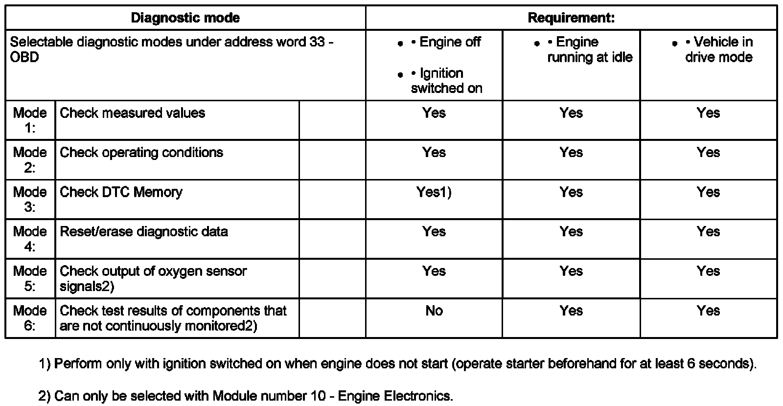 Selectable Diagnostic Modes Under Address Word 33 - OBD