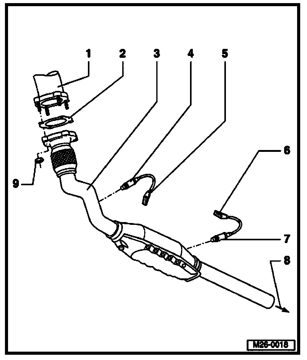 Front Exhaust Pipe With Three Way Catalytic Converter (TWC) And Attachments (Vehicles With Engine Code AWP, AWV)