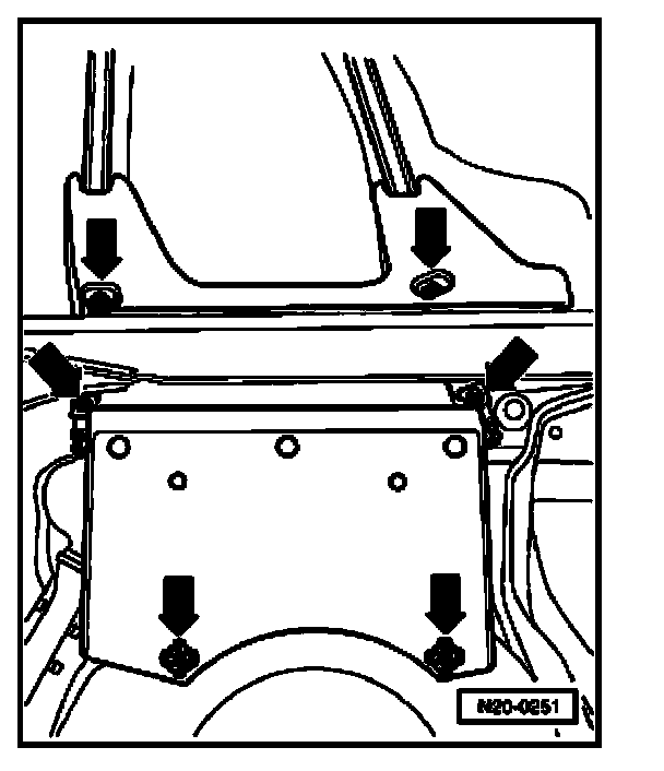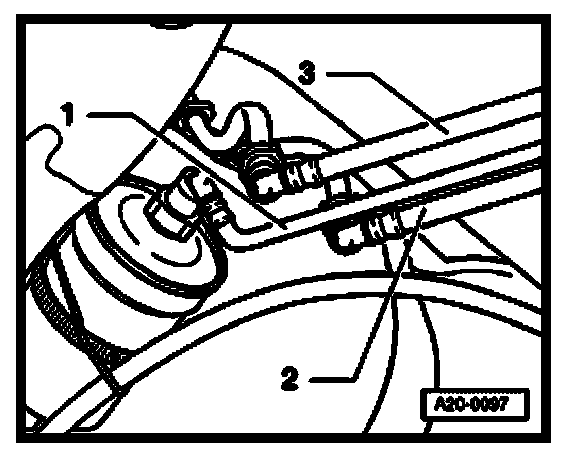 - Remove tensioning strap. When doing this support fuel tank with engine/transmission jack V.A.G 1383 A.