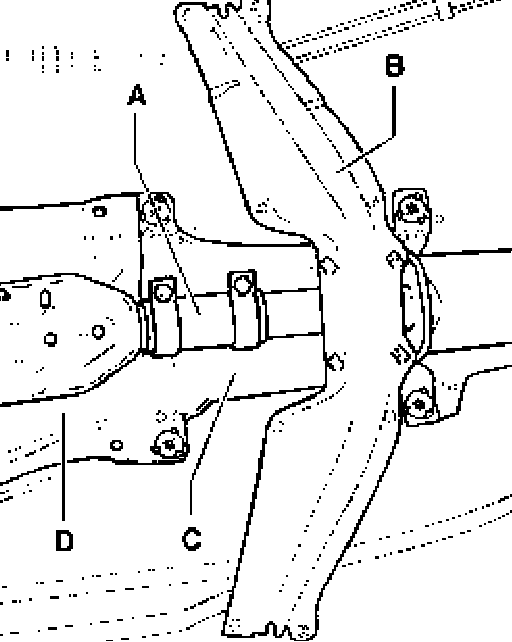 - Remove tunnel bridge - B - located beneath exhaust system.