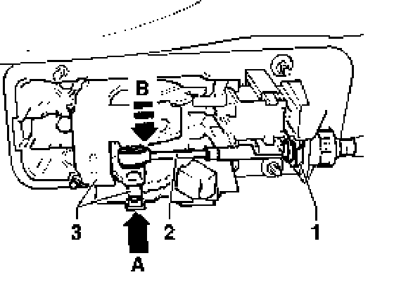 - Pry selector lever cable - 2 - off selector lever - 3 - using a screwdriver - arrow B -.
