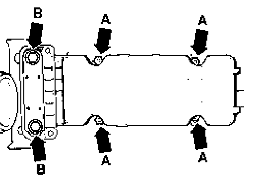 - Then tighten 2 bolts - arrows B -.
