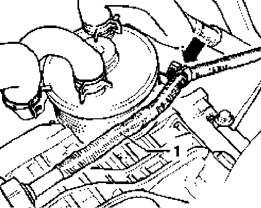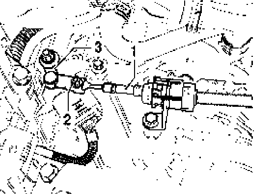- Press selector lever cable - 1 - off selector shaft lever - 3 - with, e.g. 10 mm open end wrench - 2 -.