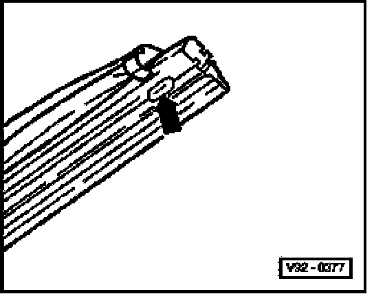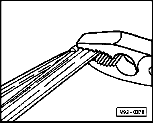- Using pliers press both steel strips and rubber together, insert in upper clips so lugs of clips on both sides engage in retaining slots -arrow- of wiper blade rubber.
