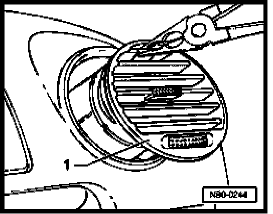 - Carefully remove air outlet -1- with needle nose pliers as indicated.