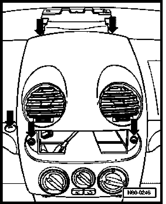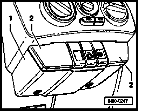 - Push center cover -1- forward -arrow A- and lift up to remove.