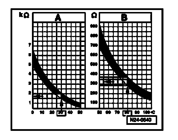 - 30 degrees C is in range A and corresponds to a resistance of 1.5 to 2.0 kohms