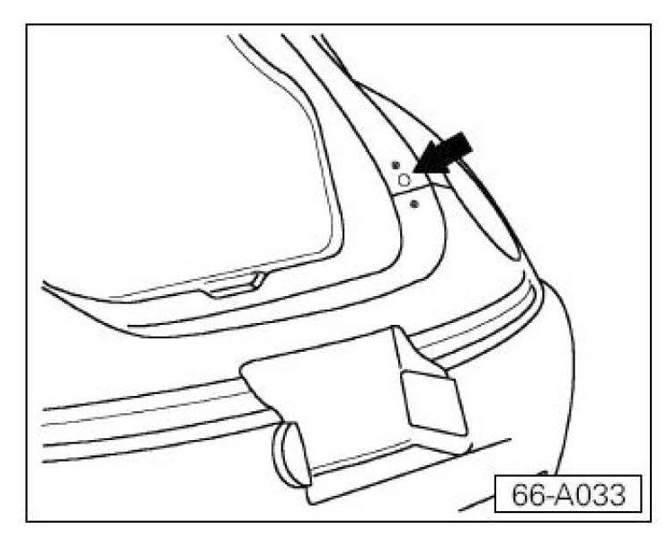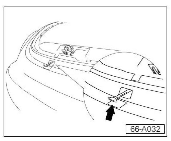 ^ Trunk lid transparent film Part No: 1C0 837 997 C, installation position. Install qty. 2 (one over the other) at each round rubber stop, where stop will rest on fender -arrow-.