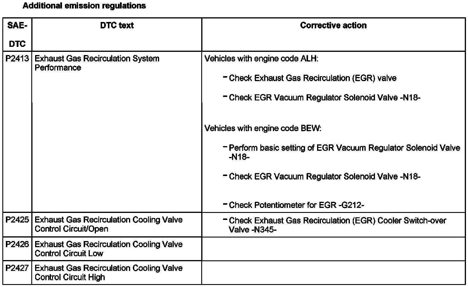 DTC P2413 - P2427: