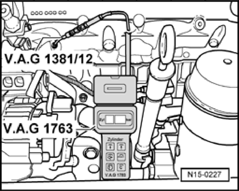 - Check compression with compression tester V.A.G1763.