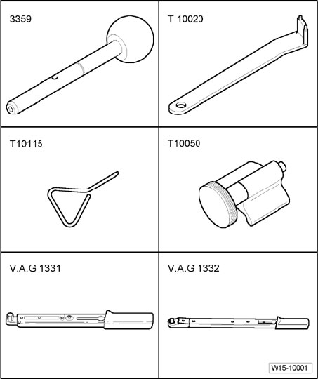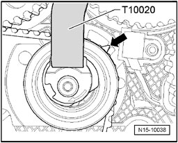 ^ Toothed belt tensioner T10020 or T10004 Counterhold T10172