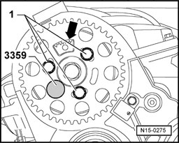 - Unlock hub with pin 3359 out of engine in direction of rotation.