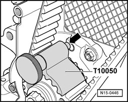 - Once crankshaft stop T10050 has engaged, check whether