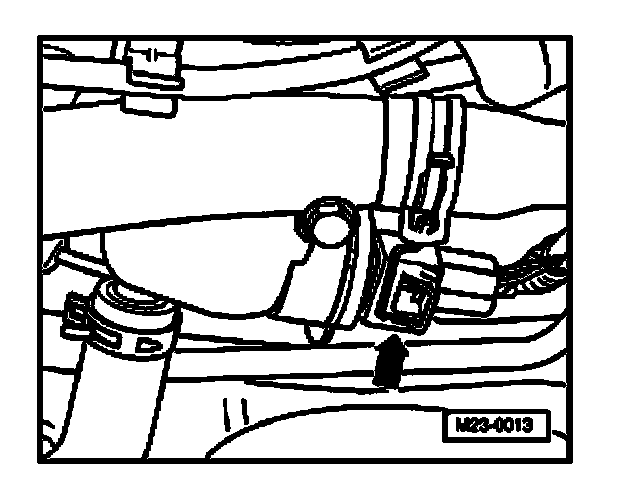 - Disconnect 4-pin connector from Engine Coolant Temperature (ECT) Sensor -G62- with Engine Coolant Temperature (ECT) Sensor -G2- (arrow).