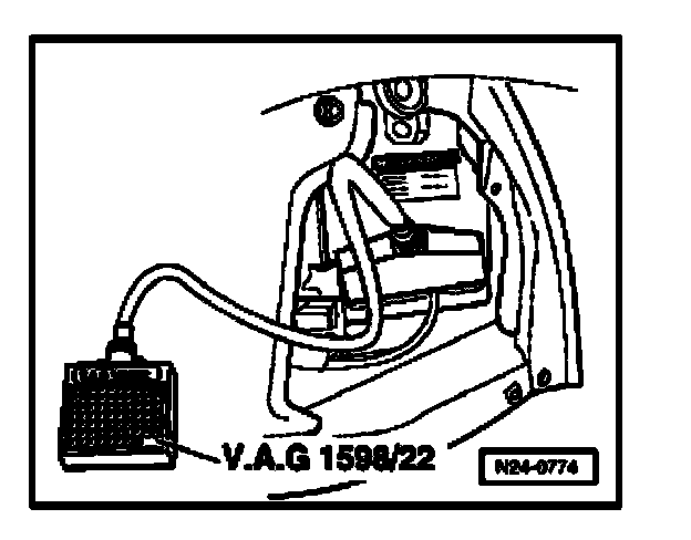 - Connect V.A.G1598/22 test box at control module wiring harness.