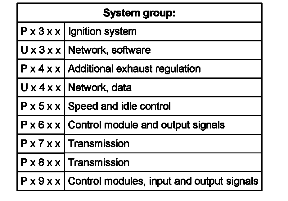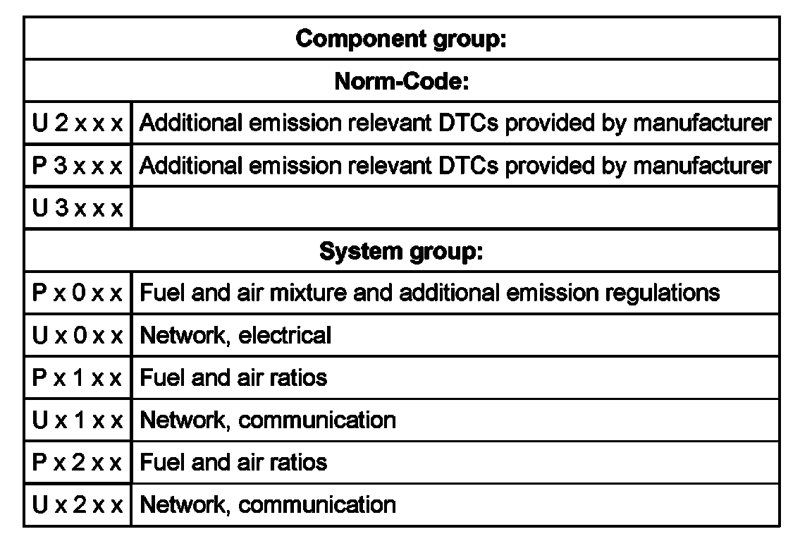 The DTC always consists of a 5-digit alpha-numeric value with the following meaning: