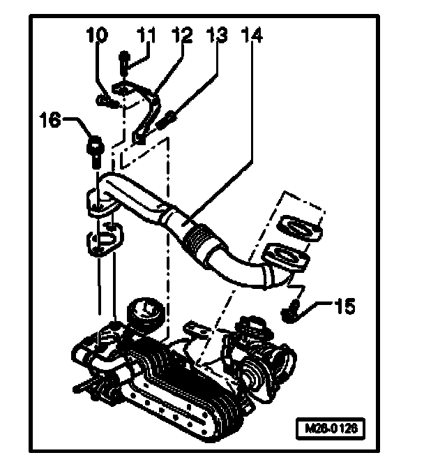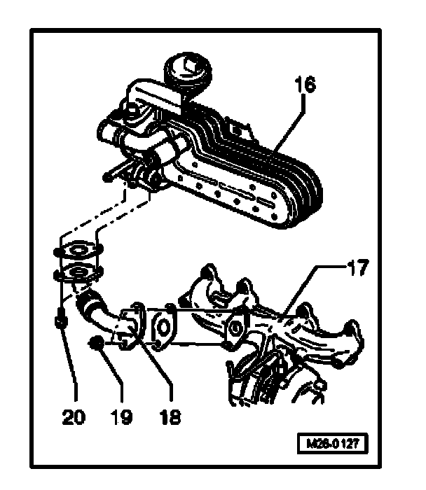 - Install connecting pipe -18 - from heat exchanger for exhaust gas recirculation -16 - to exhaust manifold -17 - with seals, bolts - 20 - and new nuts -19 -.