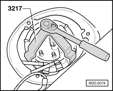 - To remove the fuel delivery unit, the fuel tank may only be filled to a maximum of 3/4. Empty fuel tank => [ Fuel Tank, Draining ] , if necessary.