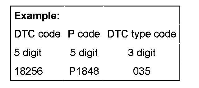 ^ The 3 digit DTC type code is a data code and may be disregarded, but the DTC type text is of use.
