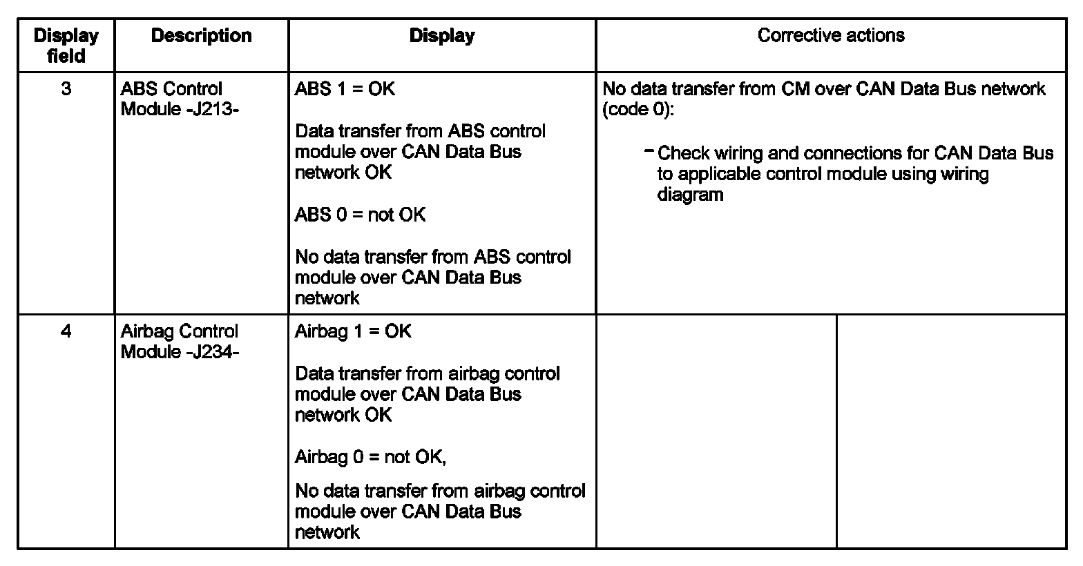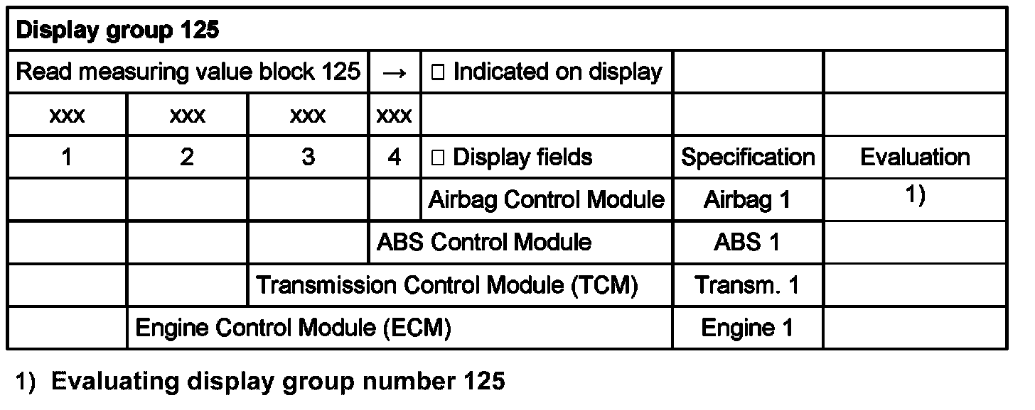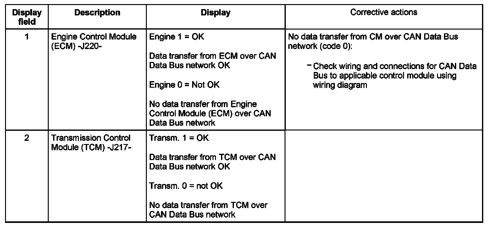 - Display fields in display groups 125 and 126 provide the CAN Data Bus function status codes of various control modules connected to the vehicle CAN Data Bus network.