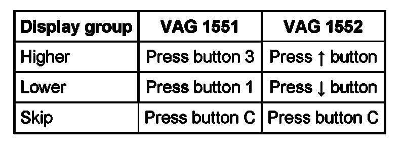 - Connect VAG 1551 Scan Tool (ST), input address word 19 "Gateway" and then press -> button until "Select function XX" is shown in display
