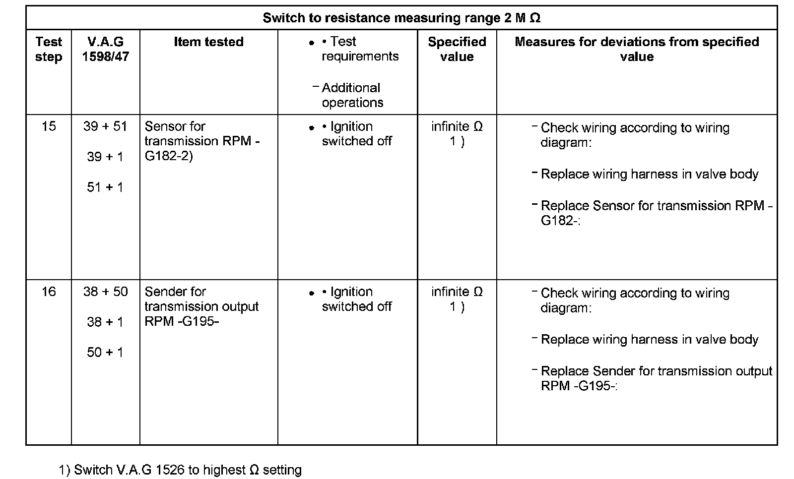 Test Table, Test Steps 15-16: