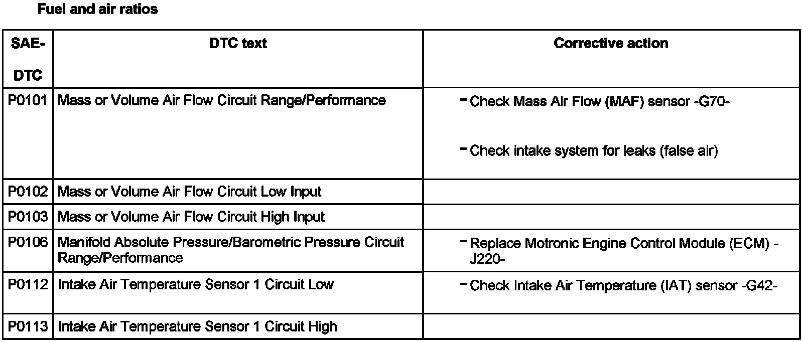DTC P0101 - P0113: