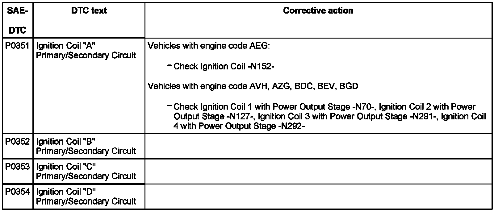 DTC P0351 - P0354: